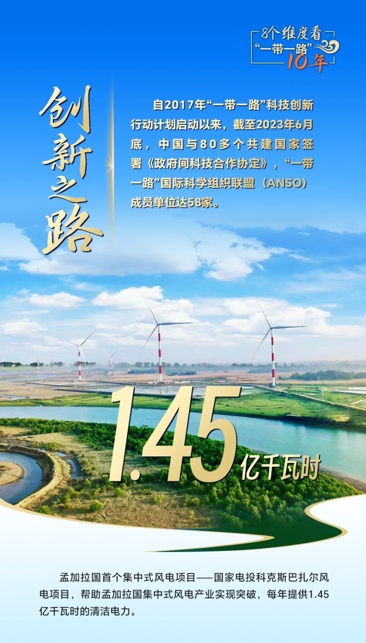 10年來,創(chuàng)新始終是一個關(guān)鍵詞,中國與共建國家加強科技創(chuàng)新合作,加速集聚創(chuàng)新資源,為共建“一帶一路”注入強勁動力。截至2023年6月底,中國與80多個共建國家簽署《政府間科技合作協(xié)定》,“一帶一路”國際科學組織聯(lián)盟(ANSO)成員單位達58家;2013年以來,中國支持逾萬名共建國家青年科學家來華開展短期科研工作和交流,累計培訓共建國家技術(shù)和管理人員1.6萬余人次;累計幫助50多個非洲國家建成20多個農(nóng)業(yè)技術(shù)示范中心,在農(nóng)業(yè)、新能源、衛(wèi)生健康等領(lǐng)域啟動建設50余家“一帶一路”聯(lián)合實驗室。