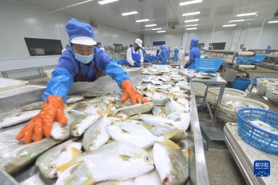 10月17日,位于中印尼“兩國雙園”的福建淼天匯食品有限公司員工在整理準備出口到印尼的魚產品。