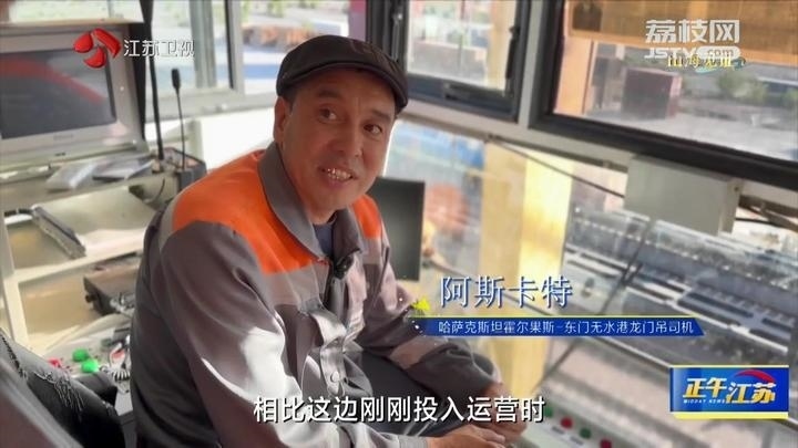 哈薩克斯坦霍爾果斯-東門無水港龍門吊司機(jī)阿斯卡特說:“相比這邊剛剛投入運(yùn)營時,運(yùn)輸量有非常明顯的增加。原來每天1-2列,現(xiàn)在7-8列通過。我收入有增多了,來這之前是3個小孩,現(xiàn)在是5個小孩?!?/p>