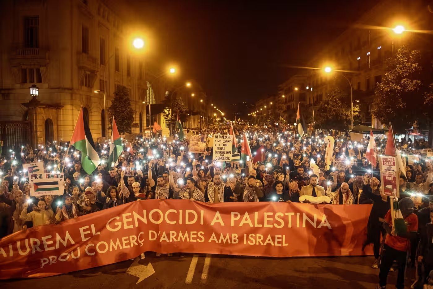 當(dāng)?shù)貢r間11日,民眾在西班牙巴塞羅那參加支持巴勒斯坦游行 圖源:《衛(wèi)報》