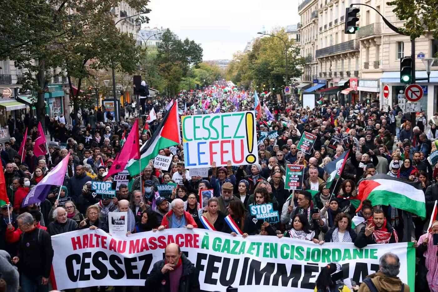 當(dāng)?shù)貢r間11日,民眾在法國巴黎參加支持巴勒斯坦游行 圖源:《衛(wèi)報》