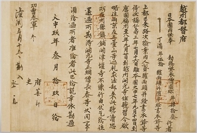 853年,圓珍入唐,先后在福州開元寺、天臺山國清寺、長安青龍寺等地修學。858年,圓珍攜大量經(jīng)卷、法器等回到日本,被尊為三井寺第一代住持,并成為日本天臺宗寺門派創(chuàng)始人。在唐求法期間,圓珍與各界人士結下深厚友誼。圓珍的親身經(jīng)歷以及他和唐朝人士的往來信件等,成為中日文化交流的歷史見證。