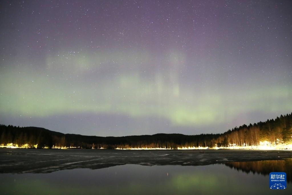 這是4月17日在挪威首都奧斯陸松恩湖拍攝的北極光。