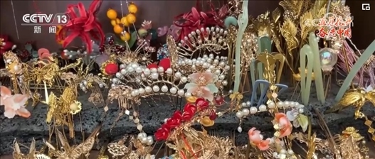 一抹柳葉眉,一頭貴妃髻,在胡芯銀的巧手之下,不到40分鐘的時(shí)間,一個(gè)“楊貴妃”的妝造就完成了,胡芯銀還專門在發(fā)髻上加上了古代飾物“步搖”。