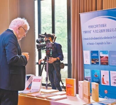 5月3日,中國社會(huì)科學(xué)出版社“理解中國”叢書法文版圖書揭幕儀式在法國巴黎舉行。圖為現(xiàn)場(chǎng)嘉賓在展位前駐足了解相關(guān)圖書。本報(bào)記者 楊 一攝