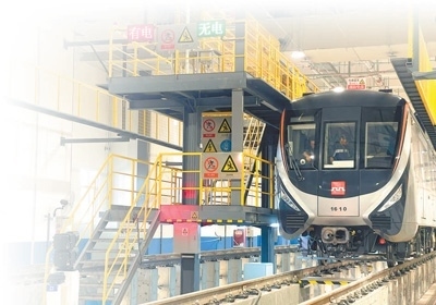 西安地鐵16號(hào)線全自動(dòng)無(wú)人駕駛列車正在進(jìn)行檢修。本報(bào)記者 張丹華攝