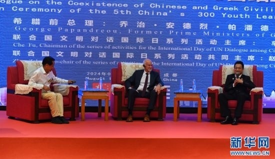 聯(lián)合國文明對(duì)話國際日系列活動(dòng)“中希文明交流互鑒對(duì)話”近日在四川省成都市“中華雷鋒志愿者小鎮(zhèn)”舉行。希臘前總理喬治·帕潘德里歐,聯(lián)合國藝術(shù)基金會(huì)主席、“2024中華雷鋒志愿者特別行動(dòng)計(jì)劃”負(fù)責(zé)人車夫出席并開展對(duì)話。