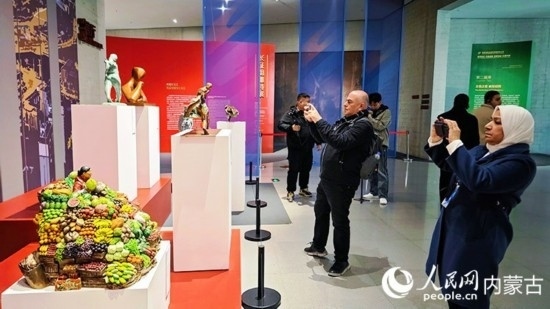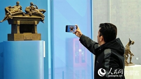 外媒記者參觀呼和浩特雕塑藝術館。人民網記者 張雪冬攝