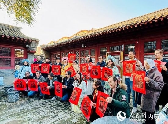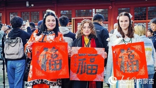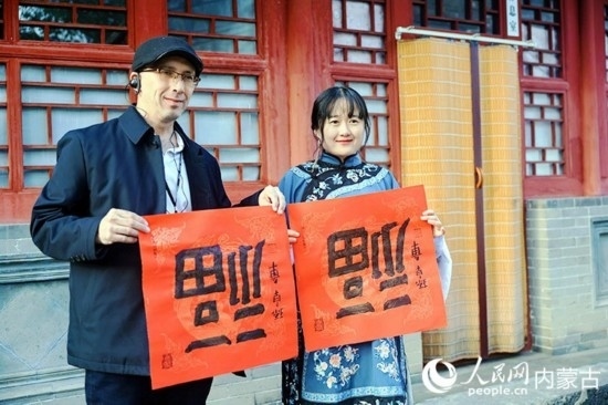 人民網(wǎng)呼和浩特10月23日電 (張聿修、孟佳澍、張雪冬、實(shí)習(xí)生朱昱晗)?!暗埂绷???!暗健绷耍[弄著手中的福字,了解到關(guān)于福字的寓意,塔吉克斯坦記者烏斯蒙·阿卜杜恰洪洛夫露出驚訝的表情,感嘆中國(guó)語(yǔ)言蘊(yùn)含的智慧。