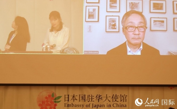 澀澤與企業(yè)股份有限公司董事長(zhǎng)澀澤?。ㄓ遥┳鼍€(xiàn)上講座。人民網(wǎng) 喻亮攝