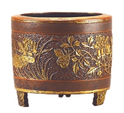明代胡光宇花卉紋銅爐(上海博物館藏)。