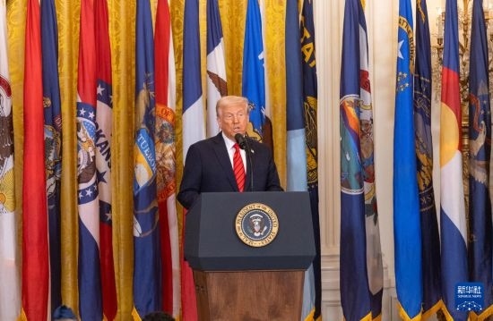 3月20日,美國總統(tǒng)特朗普在華盛頓白宮簽署行政令前講話。 新華社記者 胡友松 攝