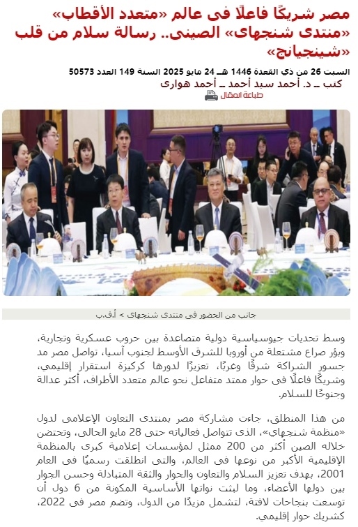 埃及《金字塔報(bào)》報(bào)道2025上合組織國家媒體合作論壇
