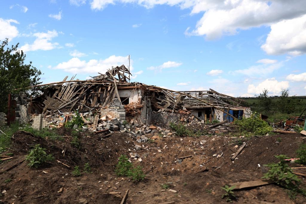 資料圖片:謝韋爾斯克附近被戰(zhàn)火破壞的村莊。法新社