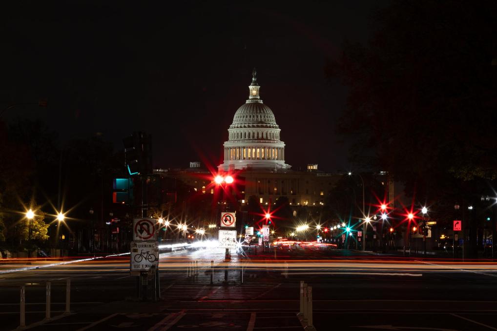 這是2025年11月9日在美國首都華盛頓拍攝的美國國會大廈。新華社記者胡友松攝