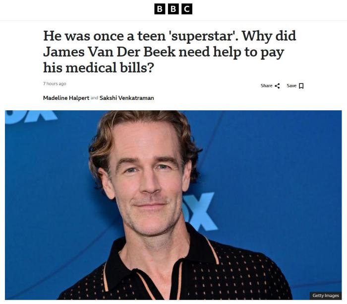 中新網(wǎng)2月14日電 據(jù)英國廣播公司(BBC)報道,美國演員詹姆斯·范德比克在20世紀90年代和21世紀初成名。憑借在青春成長劇《戀愛時代》中的表現(xiàn),范德比克走上了一些最熱門的紅毯,甚至被稱為“新晉超級巨星”。但晚年遭遇不幸時,他的家人不得不依靠朋友和粉絲的善意來獲得經(jīng)濟援助,這不僅揭示了許多演員岌岌可危的經(jīng)濟狀況,也揭示了數(shù)百萬普通美國人為支付醫(yī)療費用而苦苦掙扎的困境。