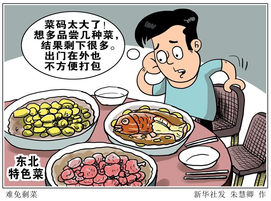 前不久從廣東來(lái)吉林旅游的張文奇體驗(yàn)了鍋包肉、鐵鍋燉魚等東北特色菜,喜愛的同時(shí)他忍不住吐槽:“菜碼太大了!想多品嘗幾種菜,結(jié)果剩下很多。出門在外也不方便打包。”