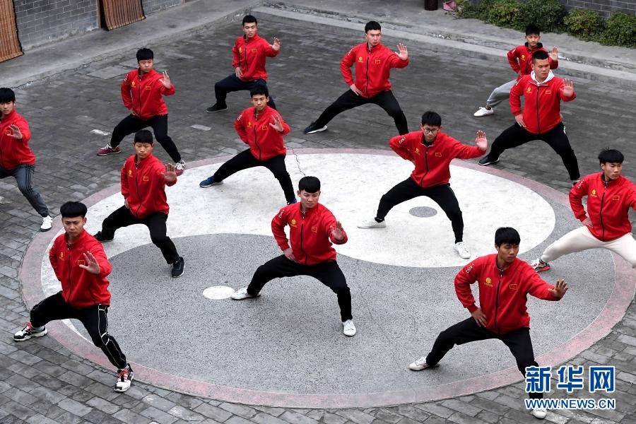 學(xué)員在河南省焦作市溫縣陳家溝的一個(gè)拳館內(nèi)練拳(無人機(jī)照片,12月14日攝)。