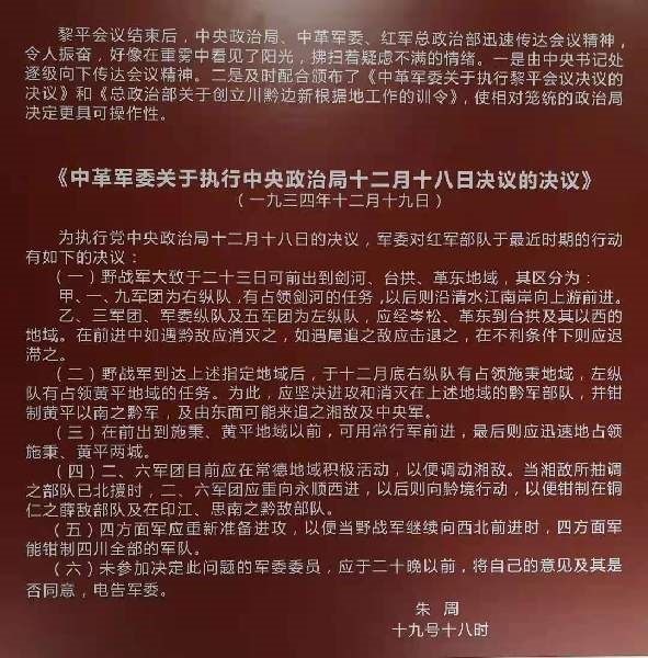 二是中革軍委為執(zhí)行黎平會議決議及時(shí)作出行動部署。