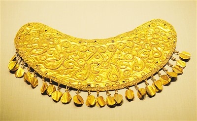 東漢月牙形金飾牌。杜建坡攝