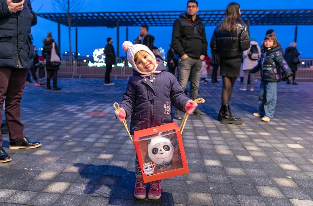 1月31日,在塞爾維亞貝爾格萊德舉行的中國燈展上,一名兒童手捧北京冬奧會(huì)吉祥物“冰墩墩”。新華社發(fā)(王韡攝)