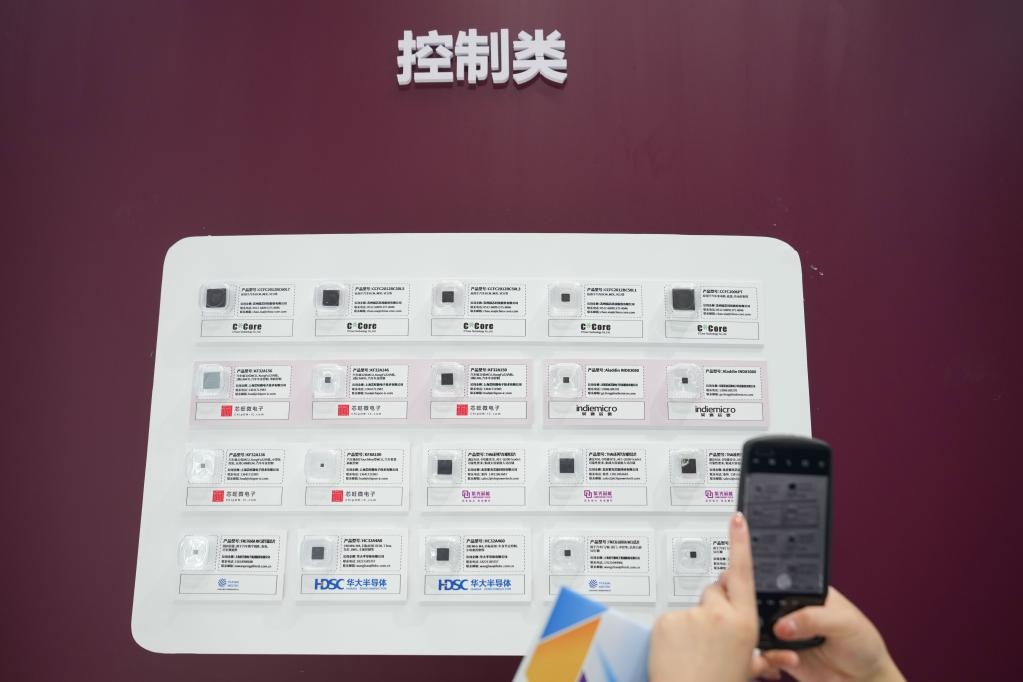 8月26日,一位參觀者在拍攝展出的車(chē)用芯片。當(dāng)日,2022世界新能源汽車(chē)大會(huì)在北京、海南兩地以線(xiàn)上、線(xiàn)下相結(jié)合的方式召開(kāi)。新華社記者鞠煥宗攝