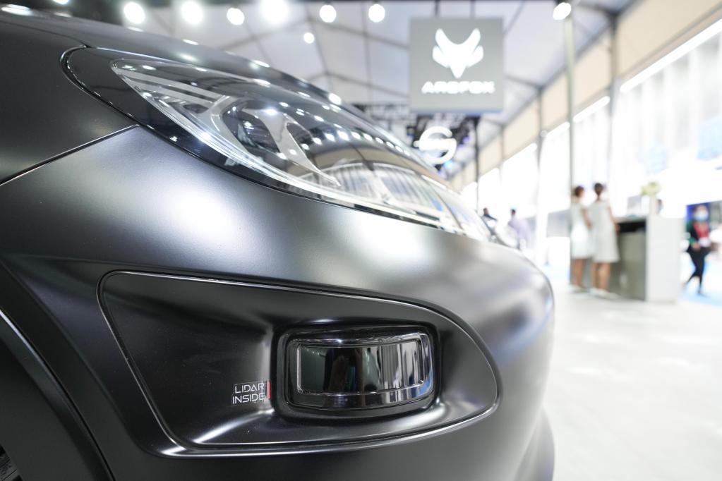 8月26日拍攝的一款搭載有激光雷達(dá)的新能源汽車(chē)。當(dāng)日,2022世界新能源汽車(chē)大會(huì)在北京、海南兩地以線(xiàn)上、線(xiàn)下相結(jié)合的方式召開(kāi)。新華社記者鞠煥宗攝