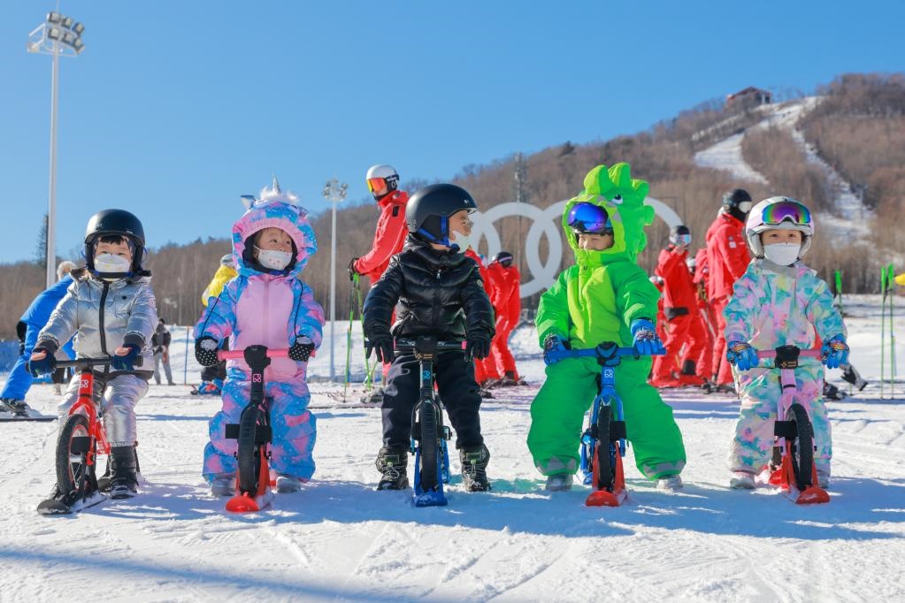 2021年11月17日,在長白山國際度假區(qū)滑雪場,小朋友們體驗(yàn)雪地平衡車。新華社發(fā)