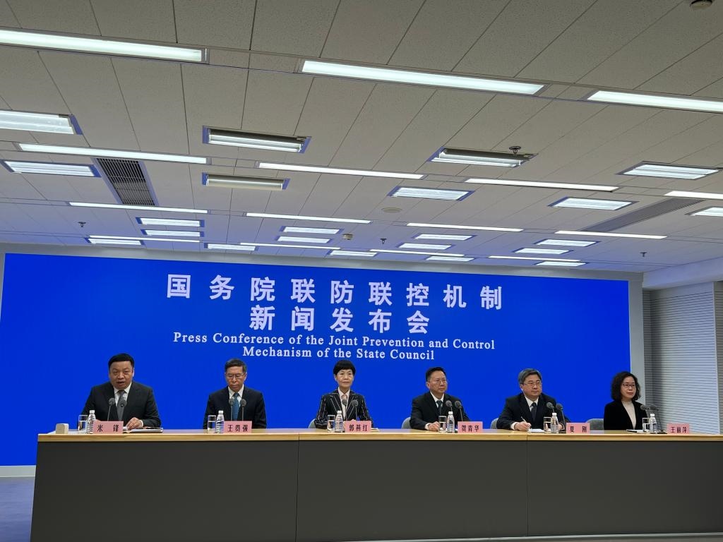 國務(wù)院聯(lián)防聯(lián)控機(jī)制新聞發(fā)布會現(xiàn)場。新華社記者 顧天成攝