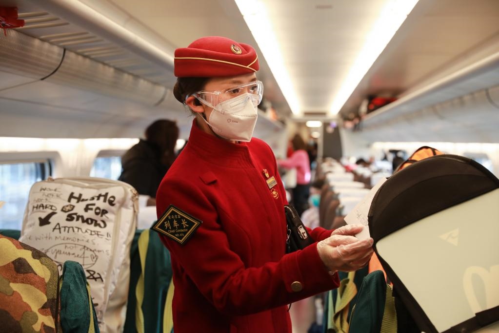 “冰雪線”上,點(diǎn)滴細(xì)節(jié)間彰顯著對(duì)冬奧盛會(huì)精彩的延續(xù)。記者采訪了解到,該線路的值乘班組是曾服務(wù)于冬奧會(huì)、冬殘奧會(huì)的北京客運(yùn)段京張高鐵車隊(duì)“雪之夢(mèng)”乘務(wù)組,班組人員均參與了盛會(huì)的交通運(yùn)輸保障工作。在這個(gè)滑雪季和春運(yùn)期間,他們將延續(xù)冬奧服務(wù)標(biāo)準(zhǔn)服務(wù)廣大旅客。
