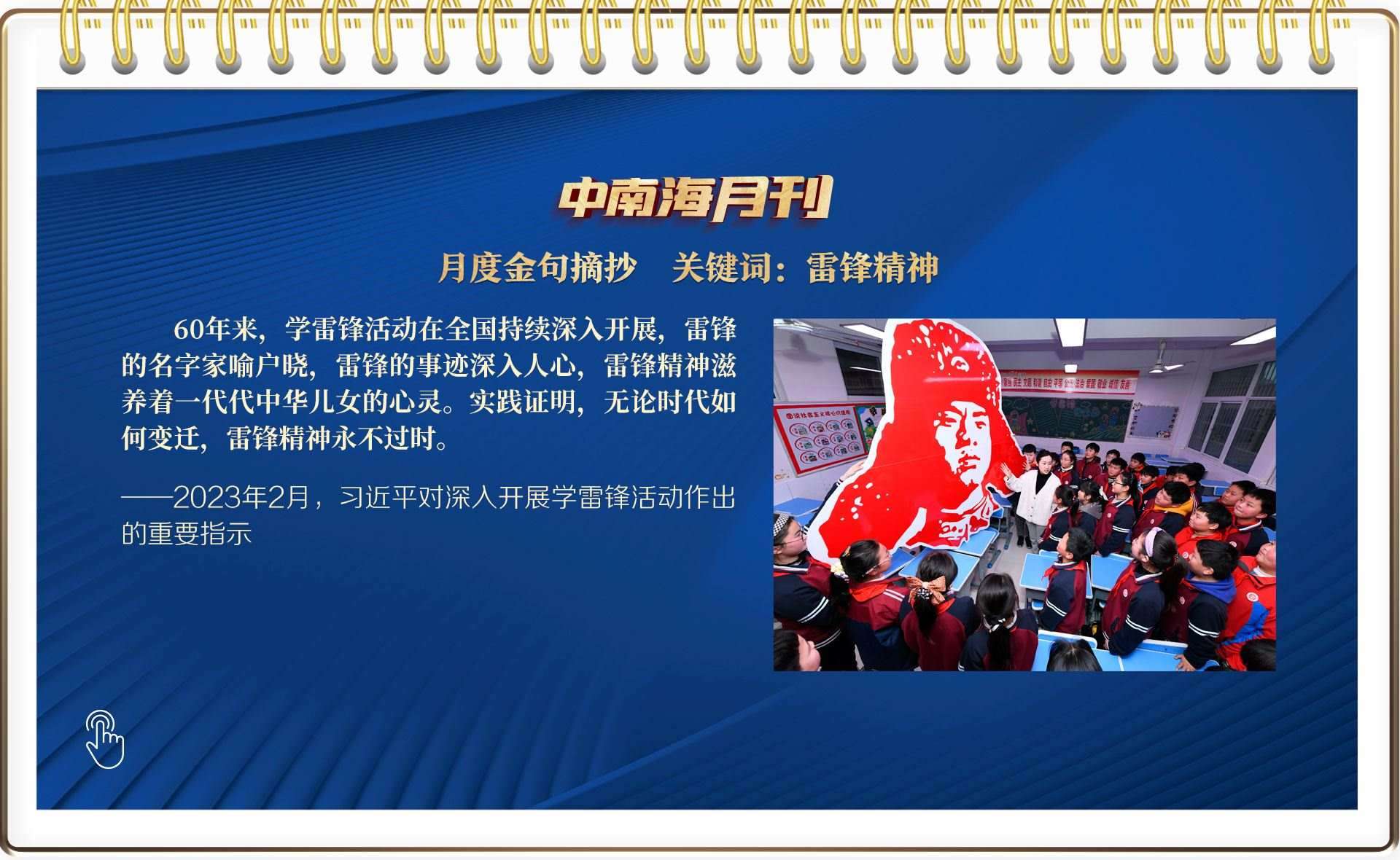 2月“關(guān)聯(lián)人物”中,雷鋒的名字家喻戶曉。在毛澤東等老一輩革命家為雷鋒同志題詞60周年之際,習近平總書記作出重要指示,一語道出了雷鋒精神的歷史厚度:“實踐證明,無論時代如何變遷,雷鋒精神永不過時。”