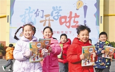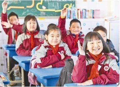 安徽省合肥市蜀山區(qū)北苑村社區(qū)琥珀小學(xué)(東區(qū)),孩子們?cè)谛@里迎接新學(xué)期的到來。陳三虎攝(影像中國)