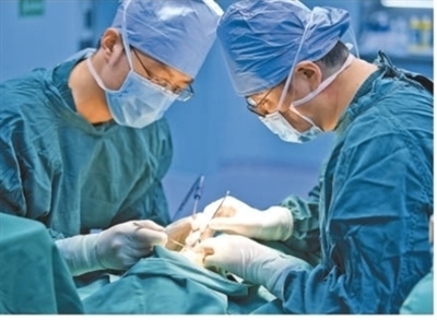 西藏自治區(qū)阿里地區(qū)人民醫(yī)院手術(shù)室,援藏醫(yī)生在為患者做手術(shù)。新華社記者 張汝鋒攝