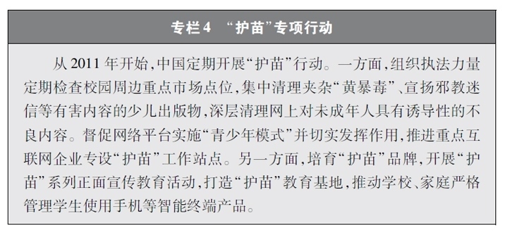 加強(qiáng)青少年網(wǎng)絡(luò)法治宣傳教育。青少年是祖國(guó)的未來(lái)、民族的希望。青少年網(wǎng)民在中國(guó)網(wǎng)民中的占比逐步增長(zhǎng)。作為互聯(lián)網(wǎng)的“原住民”,青少年是網(wǎng)上學(xué)習(xí)、交流、生活最活躍的參與者、實(shí)踐者,其合法權(quán)益也更易受到網(wǎng)絡(luò)違法活動(dòng)的侵害。中國(guó)從保護(hù)青少年網(wǎng)絡(luò)權(quán)益,促進(jìn)青少年健康成長(zhǎng)、全面發(fā)展出發(fā),遵循青少年身心發(fā)展規(guī)律,貼近青少年學(xué)習(xí)生活實(shí)際,聚焦網(wǎng)絡(luò)沉迷、網(wǎng)絡(luò)欺凌、網(wǎng)絡(luò)淫穢色情信息等重點(diǎn)問(wèn)題,通過(guò)普法微綜藝、兒童普法話劇、網(wǎng)絡(luò)普法故事廣播、網(wǎng)絡(luò)普法云課堂、學(xué)法用法知識(shí)競(jìng)賽、法治副校長(zhǎng)進(jìn)校園、編寫網(wǎng)絡(luò)普法讀本等生動(dòng)活潑、豐富多彩的形式開展法治宣傳教育,逐步形成了政府、社會(huì)、學(xué)校、家庭相結(jié)合的法治宣傳教育格局,為提升青少年網(wǎng)民法治意識(shí)和網(wǎng)絡(luò)安全素養(yǎng)提供了全面保障。