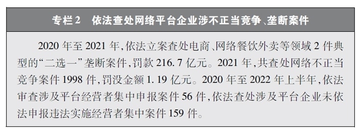 保障公平競(jìng)爭(zhēng)的網(wǎng)絡(luò)市場(chǎng)環(huán)境。隨著網(wǎng)絡(luò)平臺(tái)企業(yè)不斷擴(kuò)展自身的體量和實(shí)力,“掐尖式并購(gòu)”、無(wú)正當(dāng)理由屏蔽鏈接、“二選一”、大數(shù)據(jù)殺熟、流量挾持等妨礙市場(chǎng)公平競(jìng)爭(zhēng)的問(wèn)題也逐漸凸顯。中國(guó)積極回應(yīng)人民群眾訴求,在支持網(wǎng)絡(luò)平臺(tái)企業(yè)創(chuàng)新發(fā)展的同時(shí),依法規(guī)范和引導(dǎo)資本健康發(fā)展,采取多種治理平臺(tái)競(jìng)爭(zhēng)失序的執(zhí)法舉措。聚焦大型網(wǎng)絡(luò)平臺(tái)價(jià)格欺詐、低價(jià)傾銷等重點(diǎn)問(wèn)題,通過(guò)行政約談、行政指導(dǎo)、規(guī)則指引等多種監(jiān)管手段,整治壟斷和不正當(dāng)競(jìng)爭(zhēng)行為。圍繞民生、金融、科技、傳媒等重點(diǎn)行業(yè),依法審查涉及平臺(tái)經(jīng)營(yíng)者集中案件,防止可能妨礙市場(chǎng)競(jìng)爭(zhēng)和創(chuàng)新發(fā)展的并購(gòu)行為,引導(dǎo)網(wǎng)絡(luò)平臺(tái)企業(yè)增強(qiáng)合規(guī)意識(shí),規(guī)范自身經(jīng)營(yíng)行為。通過(guò)一系列行動(dòng),平臺(tái)經(jīng)濟(jì)市場(chǎng)環(huán)境不斷優(yōu)化,公平競(jìng)爭(zhēng)的行業(yè)生態(tài)穩(wěn)步向好,中小企業(yè)獲得更廣闊的發(fā)展空間,統(tǒng)一、開放、公平、競(jìng)爭(zhēng)、有序的網(wǎng)絡(luò)競(jìng)爭(zhēng)環(huán)境正在形成。