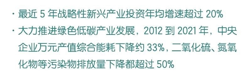 ◆ 截至目前,中央企業(yè)在涉及國家安全和國計(jì)民生等領(lǐng)域的營業(yè)收入占比超過70%,最近5年戰(zhàn)略性新興產(chǎn)業(yè)投資年均增速超過20%。