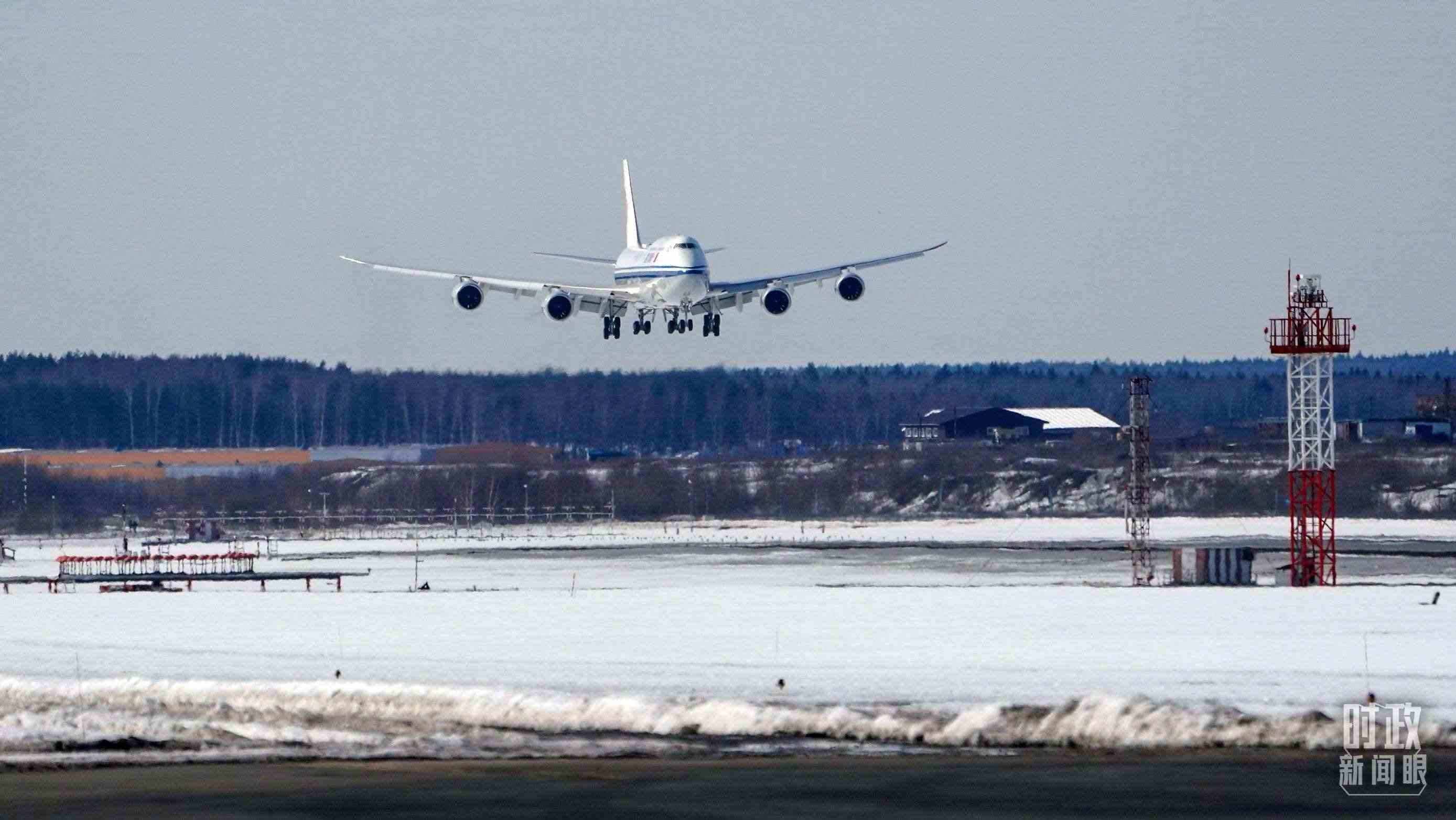 △習(xí)近平主席乘坐的專機(jī)即將落地莫斯科。(總臺(tái)國(guó)廣記者李晉拍攝)