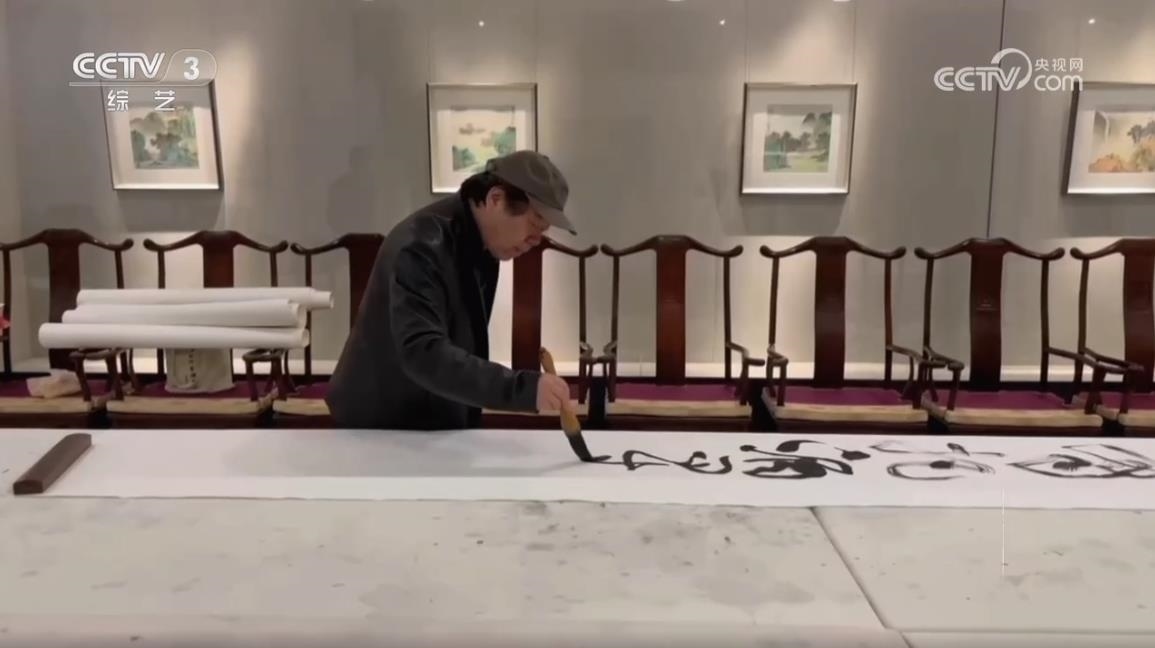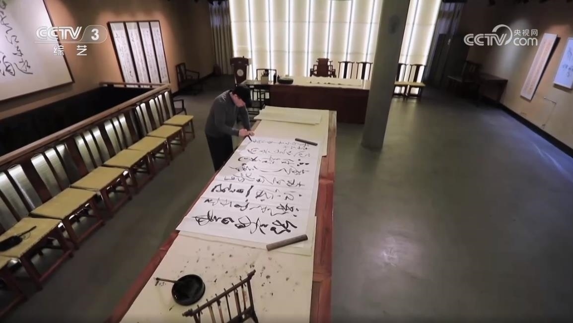 中國書法家協(xié)會草書專業(yè)委員會副主任、上海市書法家協(xié)會主席 丁申陽:武打的場面,他(導(dǎo)演)說后面一堵墻,你可以用草書來書寫,掛在后面作背景。他說這個草書跟武術(shù)其實(shí)有相同點(diǎn),都是動態(tài)的美,也有左右避讓的關(guān)系,長短的協(xié)調(diào)的關(guān)系,還有重輕的關(guān)系,矛盾平衡之間尋找一個點(diǎn),這個點(diǎn)就是協(xié)調(diào),協(xié)調(diào)就是美的。