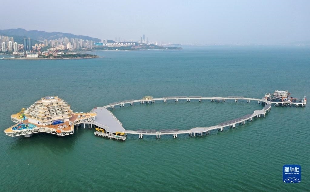 當日,位于山東省煙臺市萊山區(qū)的“耕海1號”海洋牧場綜合體二期項目投入運營?!案?號”集漁業(yè)養(yǎng)殖、海上觀光、休閑垂釣、餐飲住宿、科研科普等于一體,創(chuàng)新性實現(xiàn)現(xiàn)代海洋漁業(yè)、海洋工程技術和海洋文化旅游產業(yè)深度有機融合。新華社發(fā)(唐克攝)