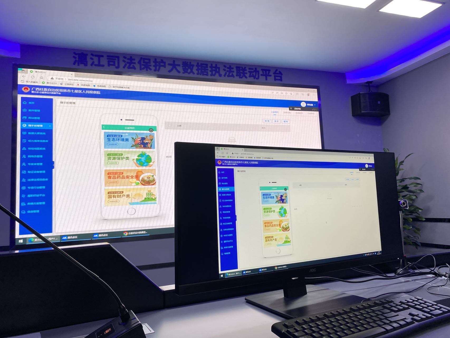 在桂林市七星區(qū)人民檢察院記者看到,漓江司法保護(hù)大數(shù)據(jù)聯(lián)動(dòng)執(zhí)法中心的大屏幕上,漓江水域事實(shí)情況清晰可見,檢察公益訴訟大數(shù)據(jù)一覽無余,綜合執(zhí)法大數(shù)據(jù)統(tǒng)一匯總在了這里。