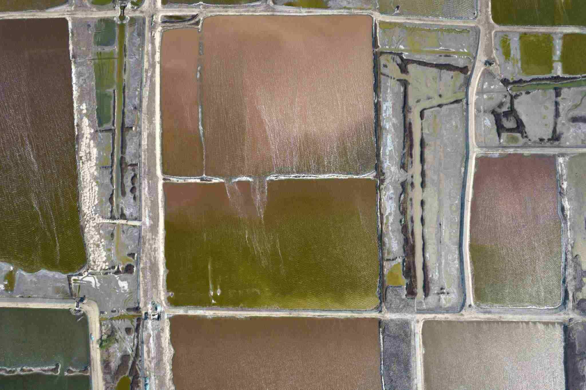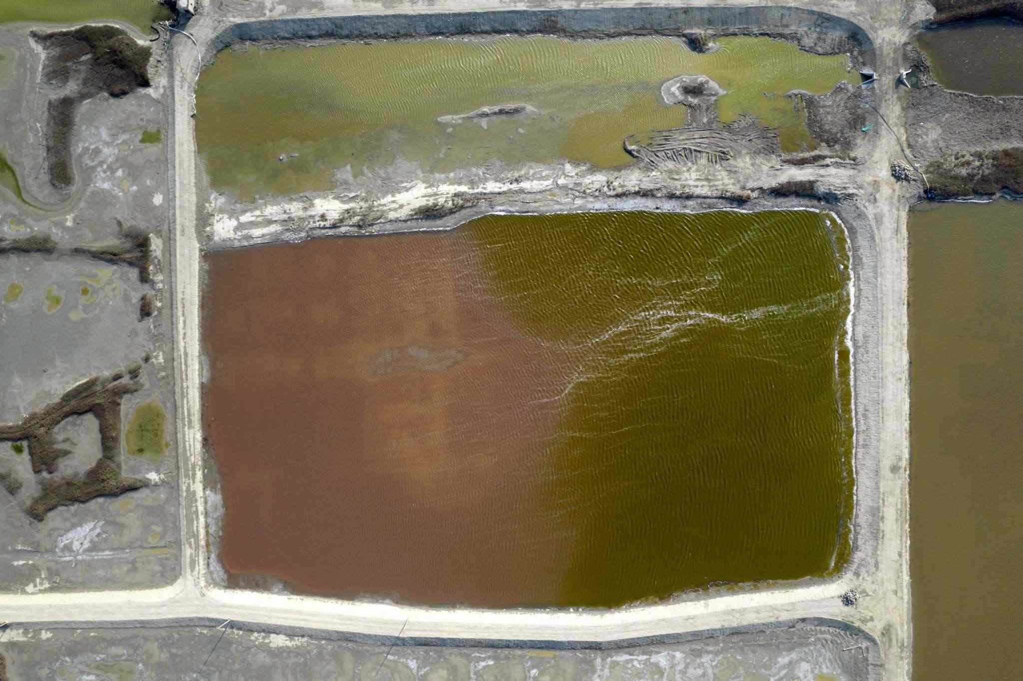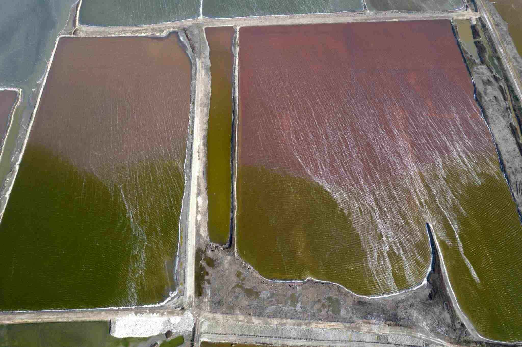 山西運城:七彩鹽湖現(xiàn)風(fēng)吹波浪景觀