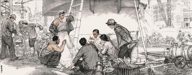 對(duì)傳統(tǒng)現(xiàn)實(shí)主義的繼承和拓展。作為一位具備卓越造型能力的人物畫(huà)家,蔡超始終堅(jiān)持深入現(xiàn)實(shí)生活,他以敏銳的觀察力和理解力,以豐富的人生閱歷不斷從生活中提煉創(chuàng)作母題,發(fā)掘常人所不易察覺(jué)的藝術(shù)趣味。因此,蔡超筆下的人物總是葆有鮮活的生命和氣息,他們不是空洞的“人民”,而是牢固與地氣相接,與時(shí)代共呼吸的真正的“人民”,他創(chuàng)造了嶄新的屬于贛鄱大地的人民形象,這是蔡超對(duì)于江西現(xiàn)實(shí)主義繪畫(huà)創(chuàng)作最重要的貢獻(xiàn)。同時(shí),蔡超不僅繼承了徐悲鴻、蔣兆和以來(lái)中國(guó)人物畫(huà)創(chuàng)作的優(yōu)良傳統(tǒng),更以“筆墨當(dāng)隨時(shí)代”的勇氣和魄力,在工業(yè)題材領(lǐng)域樹(shù)立了令人耳目一新的繪畫(huà)范式——這是一個(gè)前無(wú)古人的偉大突破。