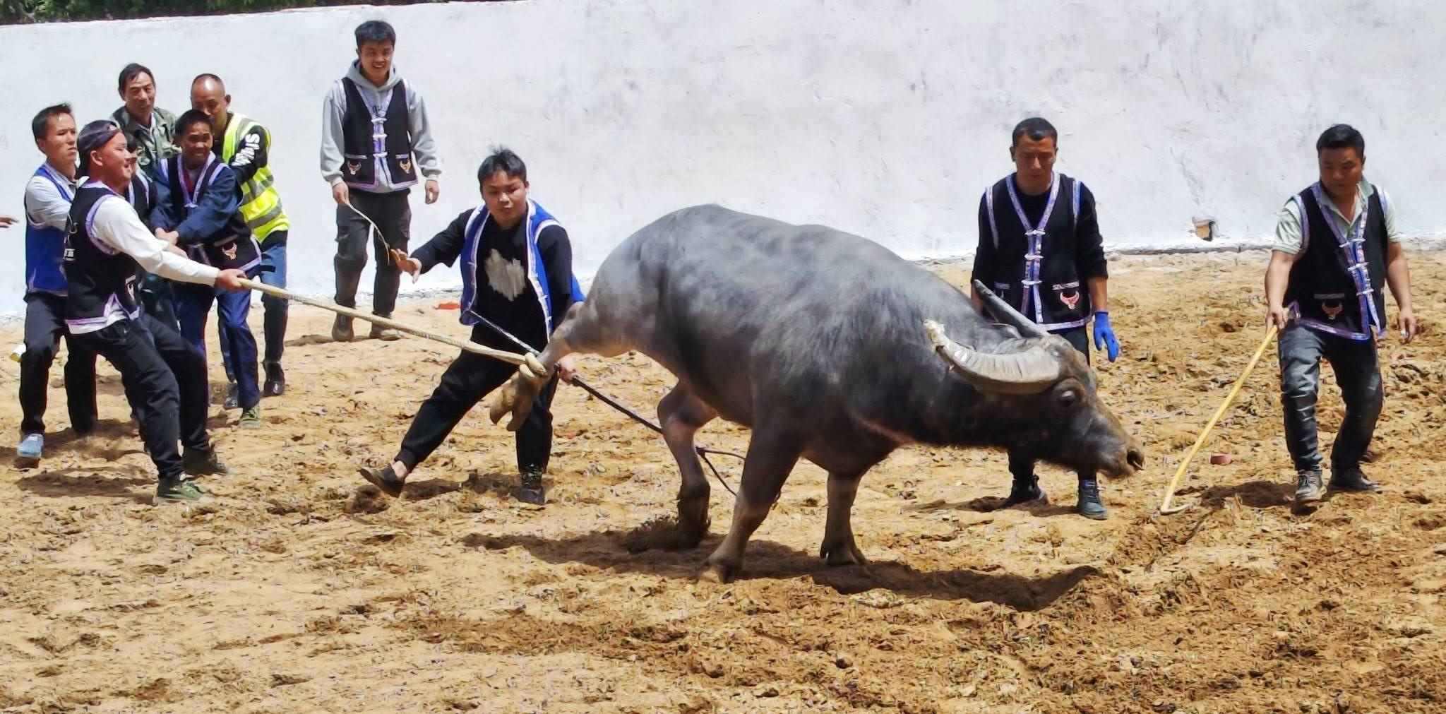 2023年4月29日,武漢,紫薇都市田園開展鄉(xiāng)村斗牛等具有特色的農旅活動。視覺中國
