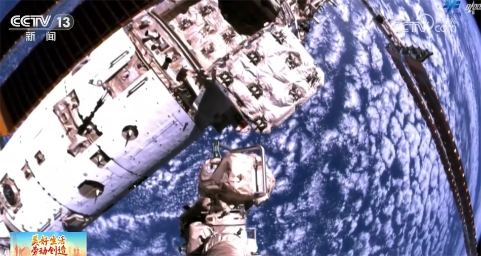總臺央視記者 陶嘉樹:這個就是貨運(yùn)飛船的貨物艙,航天員所需的食物、水、實(shí)驗(yàn)設(shè)備等物資都是裝在這里“快遞”到空間站的。這個就是貨運(yùn)飛船與空間站的對接口,航天員就是通過這個對接口進(jìn)入貨運(yùn)飛船的。