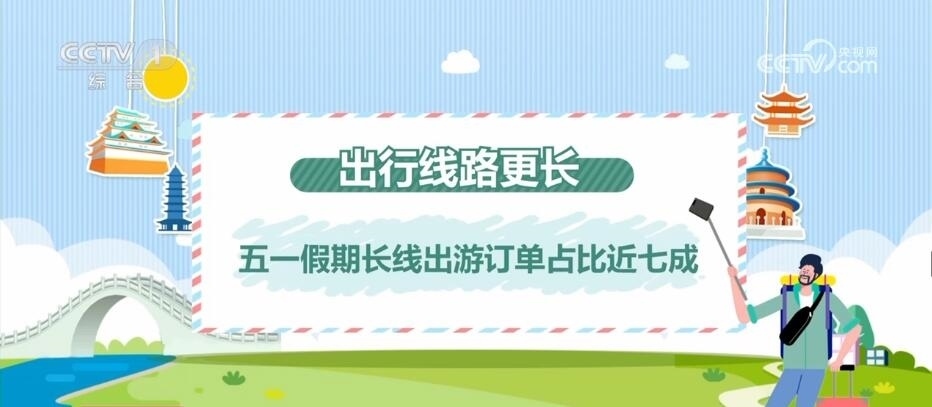 出行的人不僅多,出行的線路也更長(zhǎng)了。今年,“五一”長(zhǎng)線出游訂單占比近七成,比2019年高出6個(gè)百分點(diǎn)。