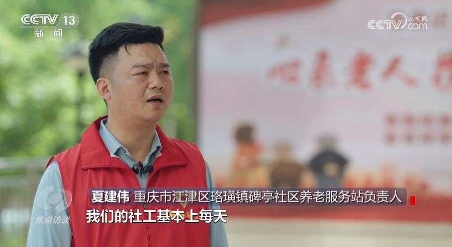 重慶市江津區(qū)珞璜鎮(zhèn)碑亭社區(qū)養(yǎng)老服務站負責人夏建偉:“一天下來,滿滿當當?shù)模覀兊纳绻せ旧厦刻於汲^了兩萬三千步的樣子。雖然說很累,但是每一個社工都很愉快,都覺得在這個過程當中找到了快樂,也找到了成就感?!?/p>