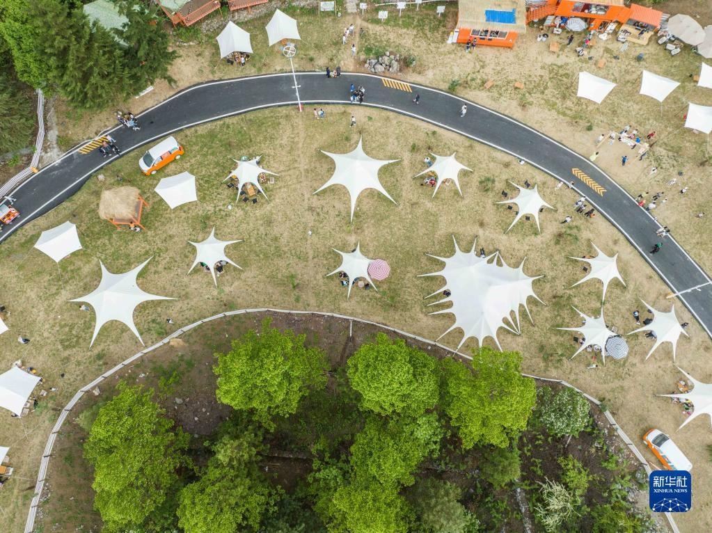 5月1日,游客在貴州省畢節(jié)市赫章縣硐上村游玩(無人機照片)。