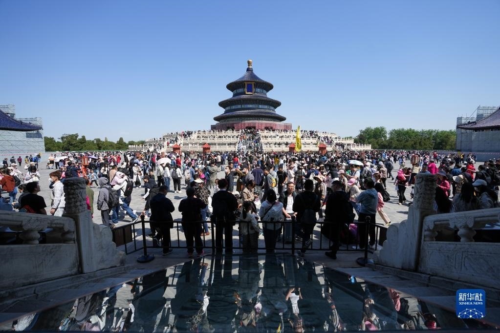 4月29日,游客在北京天壇公園參觀游覽。