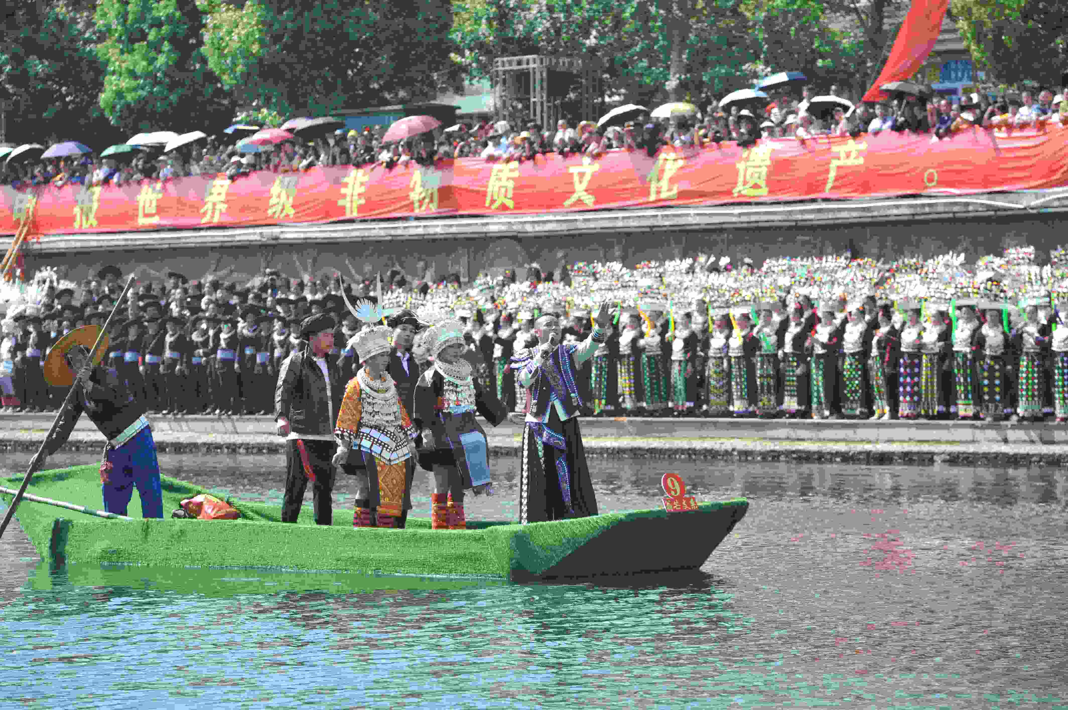 貴州臺(tái)江:翁你河畔上演萬人苗歌對唱
