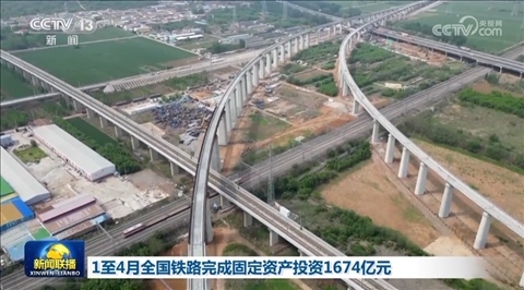 央視網(wǎng)消息(新聞聯(lián)播):國(guó)鐵集團(tuán)今天(5月9日)發(fā)布的數(shù)據(jù)顯示,1—4月,全國(guó)鐵路完成固定資產(chǎn)投資1674億元,同比增長(zhǎng)6.3%。
